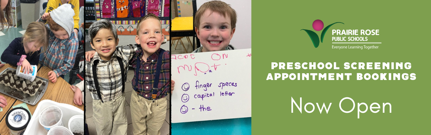 Prairie Rose Public Schools is now booking preschool screenings for children who are 3 years of age as of December 31, 2023.