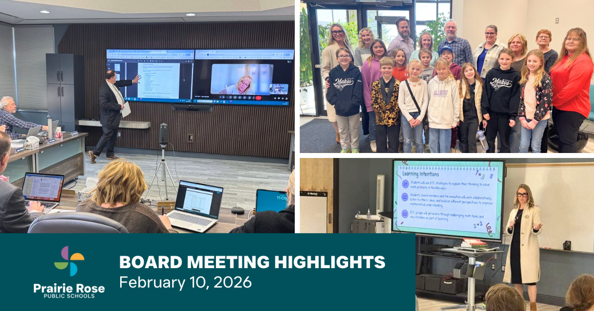 Trustee Lois Bedwell acknowledged Wade Lancot and the PRPS bus transportation team for their work supporting Prairie Rose transportation operations and maintaining efficient and reliable service for students.
